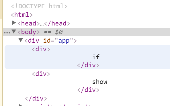 可以看到 v-if 是将dom元素删除、只有为真才会渲染