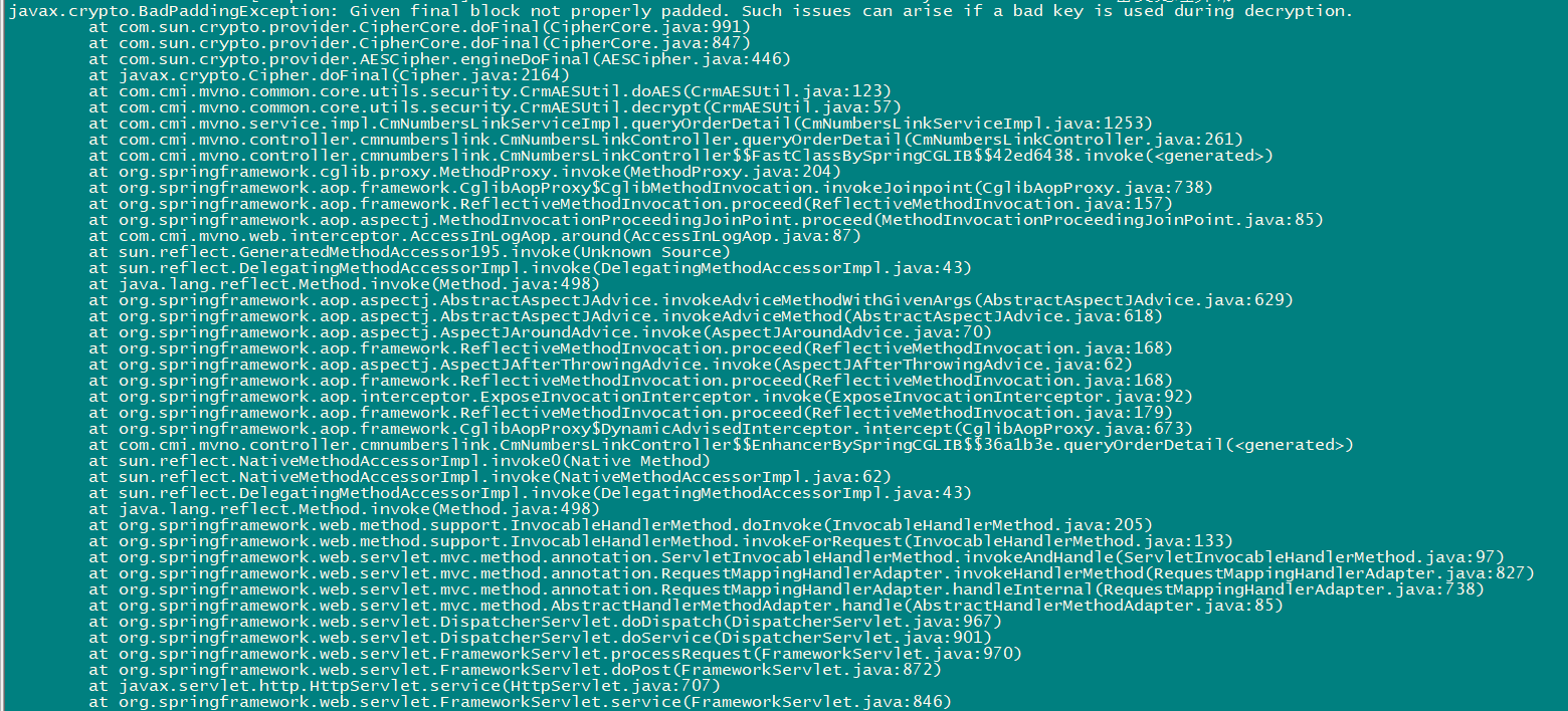 >AES解密的时候出现异常。"javax.crypto.BadPaddingException: Given final block not properly padded. Such issues can arise if a bad key is used during decryption."