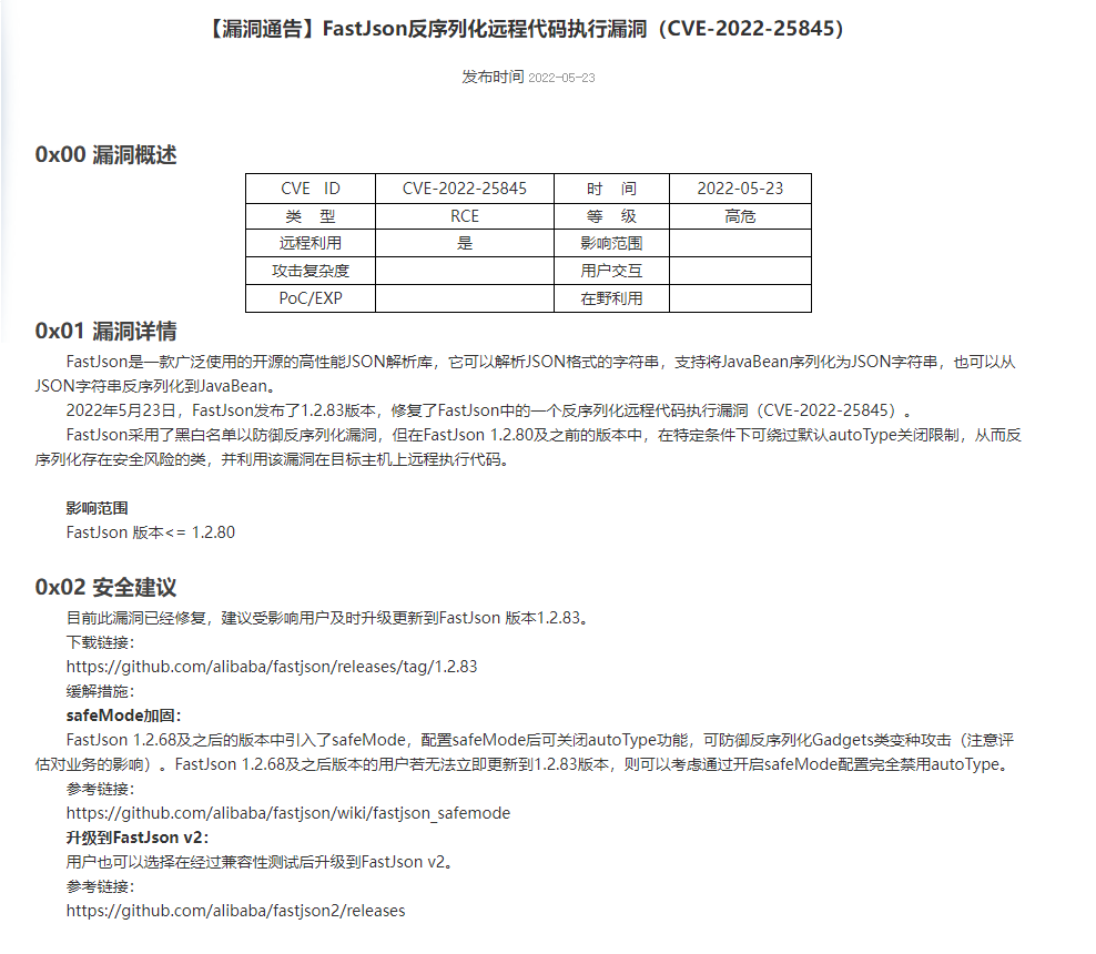 最近收到渗透测试报告,发现我们系统存在 fastjson 反序列化高危漏洞,