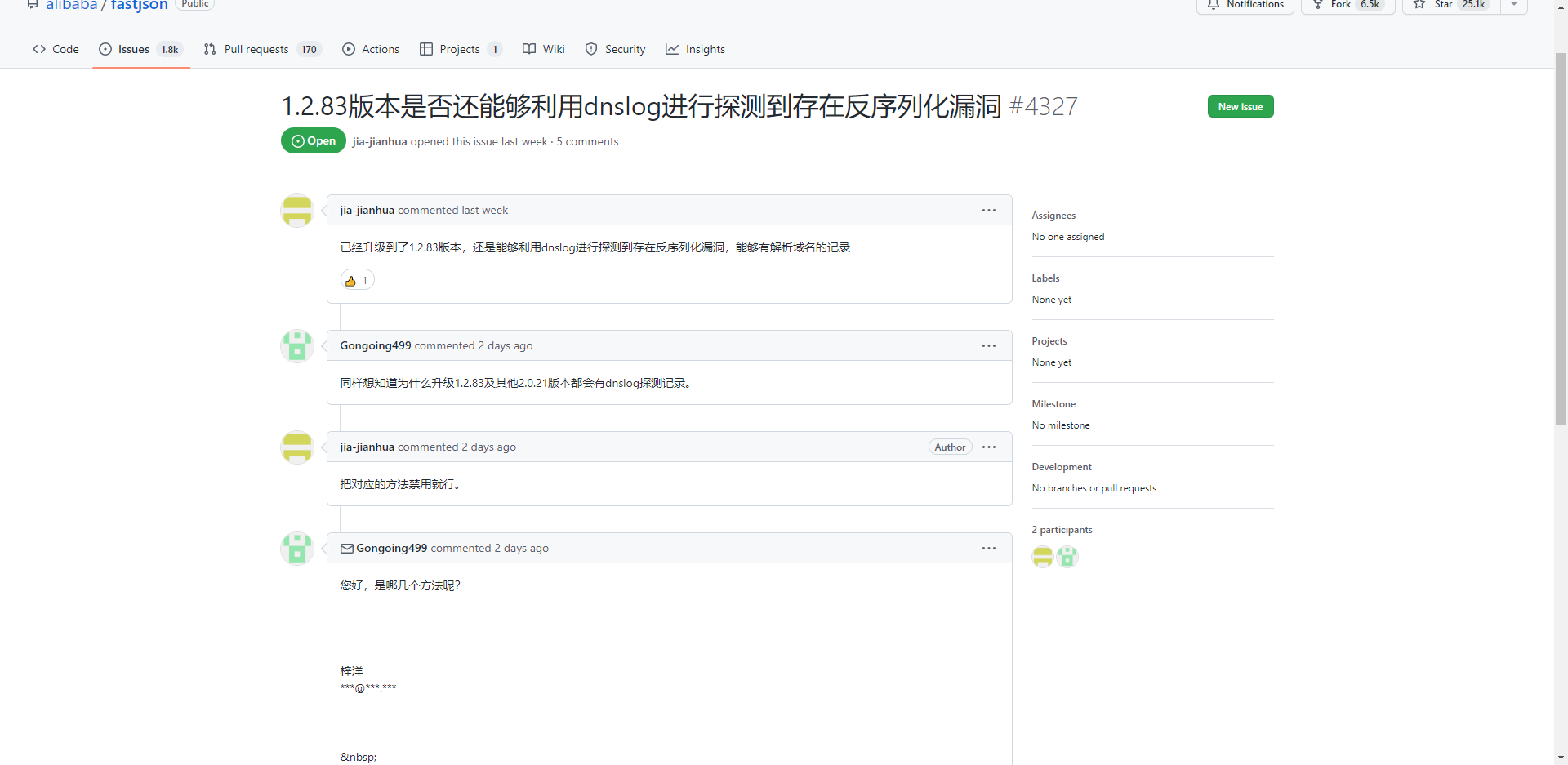 看公告说今年5月份的时候就已进行修复,我们的版本也升级到 `1.2.83` 了,但还是能通过 dnslog 进行回显