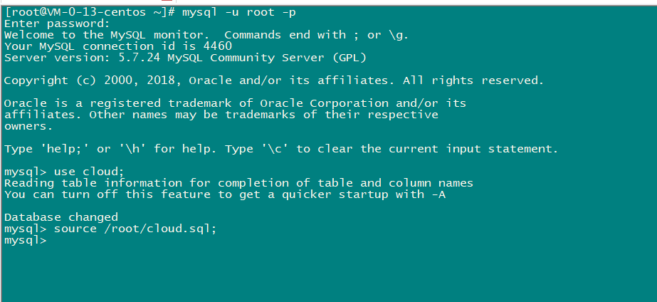 输入命令行:mysql>source /文件路径/文件名.sql;