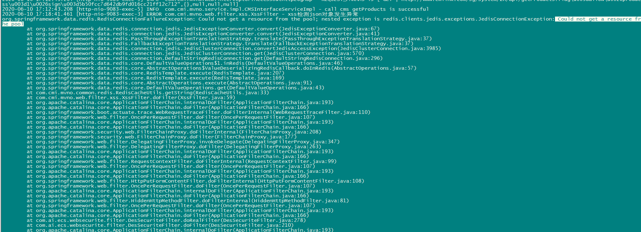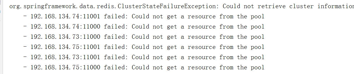 因为弄了两组Redis,A组连A组的 Redis,B组连B组的 Redis,现在发现进行读写时一直报错,报错为“**Could not get a resource from the pool**”
