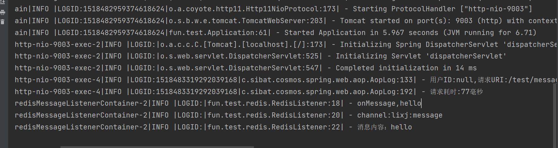 redisMessageListenerContainer.addMessageListener(redisListener,new ChannelTopic("lixj:message"));