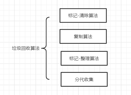 复制算法是在标记-清除算法基础上改良而来,原理是将内存容量共分为大小相等的两块,每次只使用其中的一块,当一块的内存用完了,将还存活的对象复制到另一块内存上,然后将已适用过的内存全部清除。