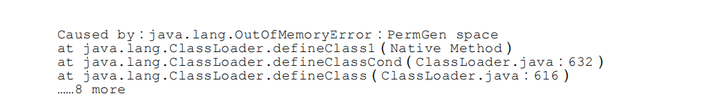 值得特别注意的是,我们在这个例子中模拟的场景并非纯粹是一个实验,这样的应用经常会出现在实际应用中:当前的很多主流框架,如 Spring、Hibernate,在对类进行增强时,都会使用到 CGLib 这类字节码技术,增强的类越多,就需要越大的方法区来保证动态生成的 Class 可以加载入内存。另外,JVM 上的动态语言(例如 Groovy 等)通常都会持续创建类来实现语言的动态性,随着这类语言的流行,也越来越容易遇到类似的溢出场景。