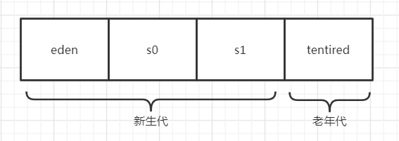 eden区、s0区、s1区都属于新生代,tentired区属于老年代。