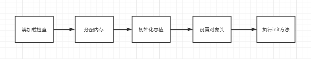 1、类加载检查:虚拟机遇到一条new指令时,首先去检查这个指令的参数是否能在常量池中定位到这个类的符号引用,并检查这个符号引用代表的类是否已被加载过、解析过和初始化过。如果没有的话就必须执行相应的类加载过程。
