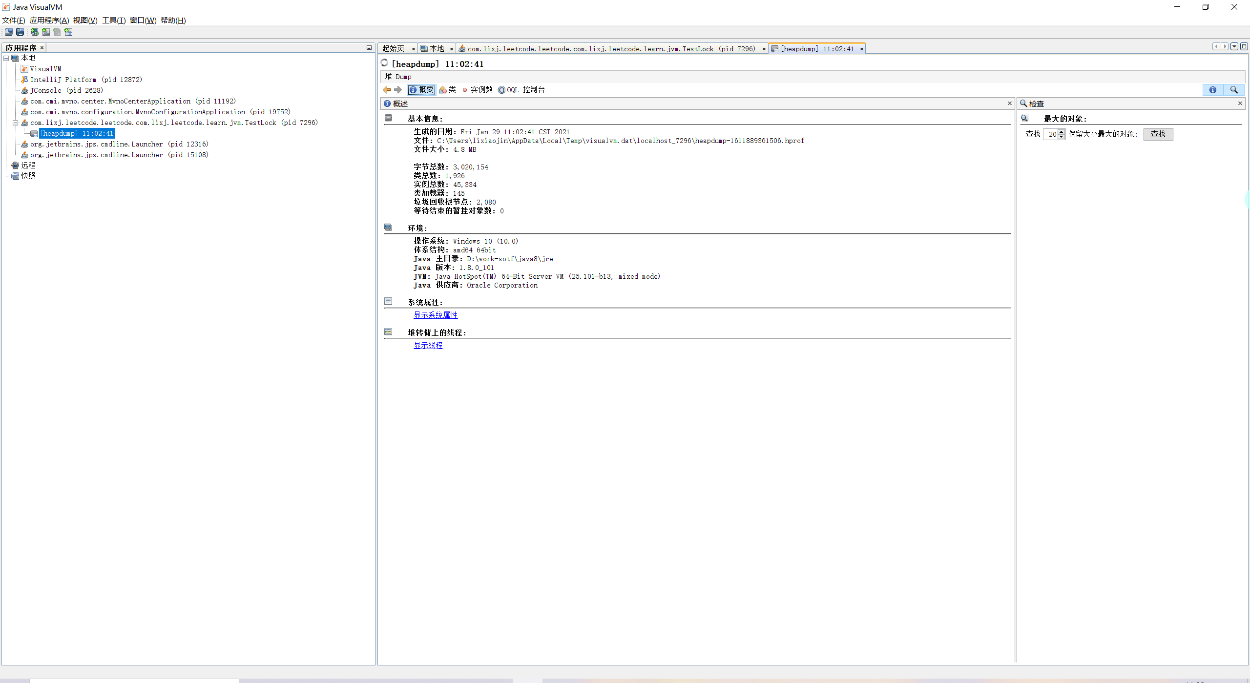在 VisualVM 中生成 dump 文件有两种方式,可以执行下列任一操作: