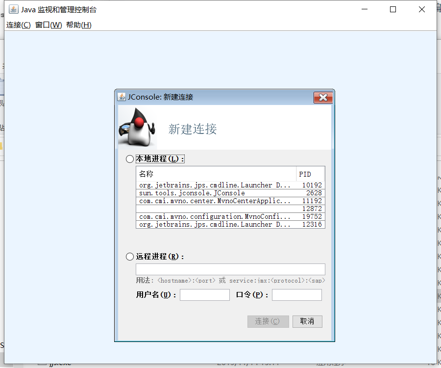 >通过 JDK/bin 目录下的 “jconsole.exe” 启动 JConsole 后,将自动搜索出本机运行的所有虚拟机进程,不需要用户自己再使用 jps 来查询了。双击选择其中一个进程即可开始监控,也可以使用下面的“远程进程”功能来连接远程服务器,对远程虚拟机进行监控。