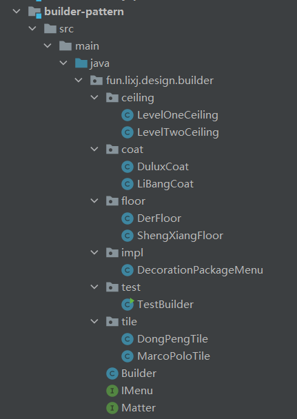这里模拟房屋装修公司设计出一些不同风格样式的装修套餐场景,来体现建造者模式的使用方法。