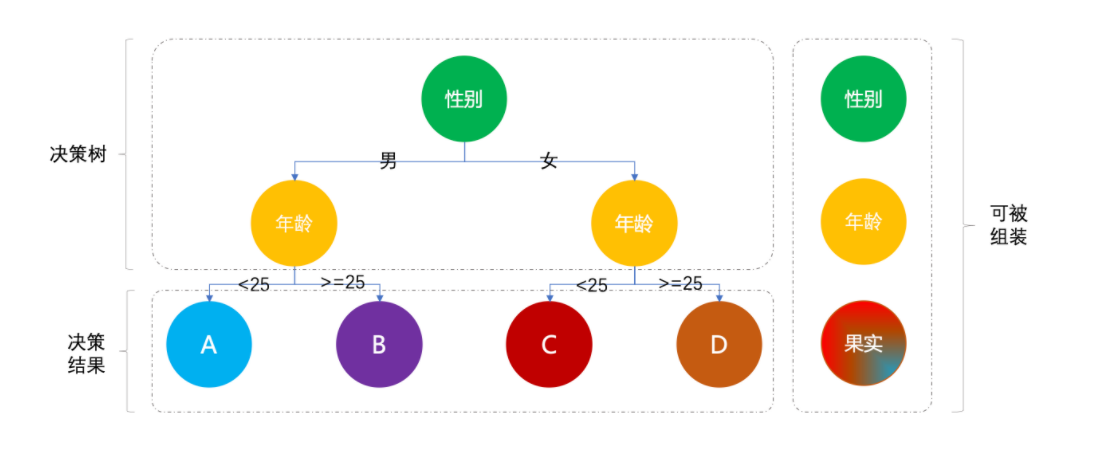 这里模拟一个类似的决策场景,体现组合模式在其中起到的作用。另外,组合模式不仅可以运用于规则决策树,还可以做服务包装,将不同的接口进行组合配置,对外提供服务能力,降低开发成本。