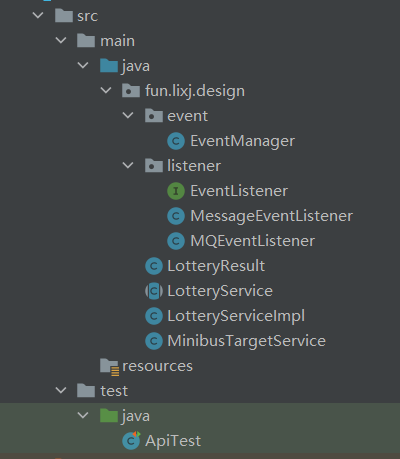 - 从上图可以分为三大块看;事件监听、事件处理、具体的业务流程,另外在业务流程中 LotteryService 定义的是抽象类,因为这样可以通过抽象类将事件功能屏蔽,外部业务流程开发者不需要知道具体的通知操作。