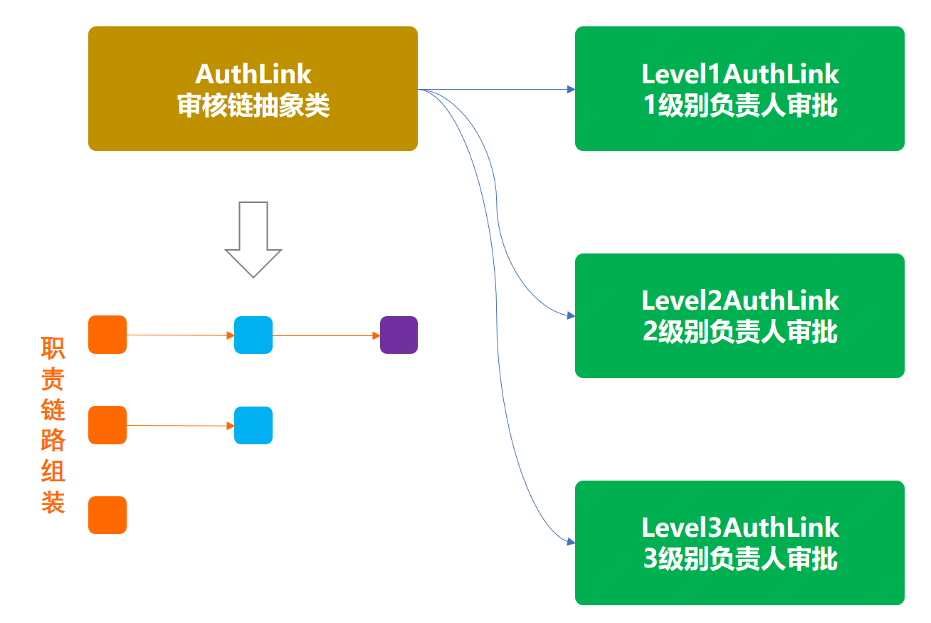 - 如上三个类;Level1AuthLink、Level2AuthLink、Level3AuthLink,实现了不同的审核级别处理的简单逻辑。